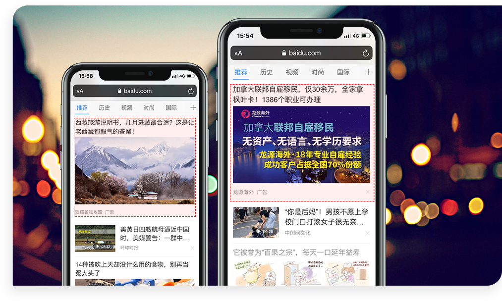 百度大數據根據用戶實時搜索行為、歷史搜索數據,關注信息,用戶興趣,產品需求,地理位置, 基本屬性精確鎖定高潛力用戶,您的廣告以資訊信息流的形式推送給用戶,廣告內容對用戶而言是一條有價值的信息, 廣告形式更加友好,直接高效的觸達高潛力用戶,百度海量優質內容提供個性化定制,帶給用戶驚喜。